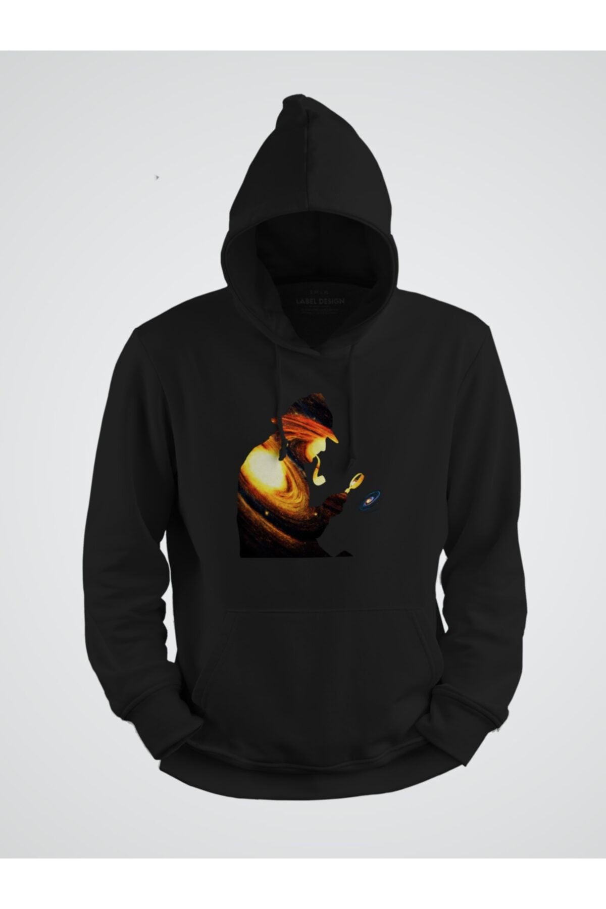 Gezegenleri Büyüteçiyle Inceleyen Adam Baskılı Kapşonlu Sweat