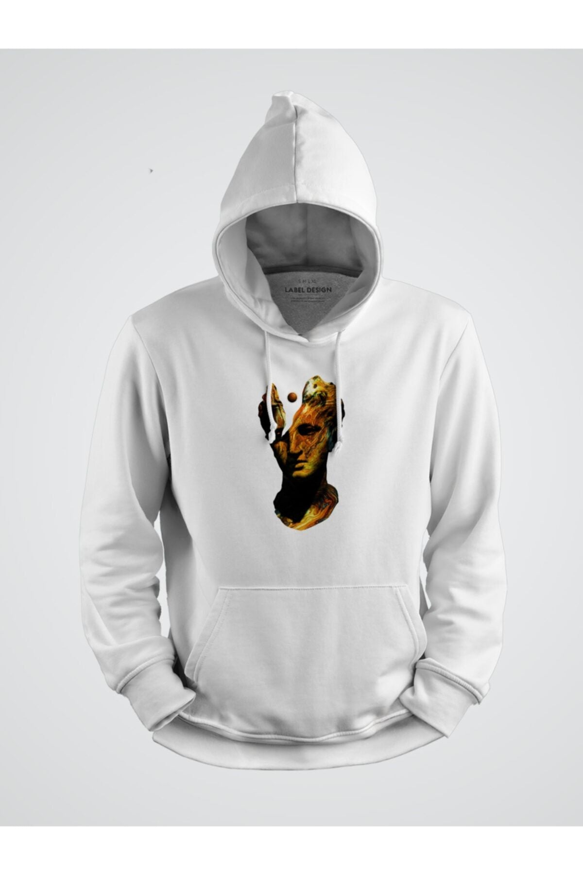 Marslı Çatlak Heykel Kafası Baskılı Kapşonlu Sweat